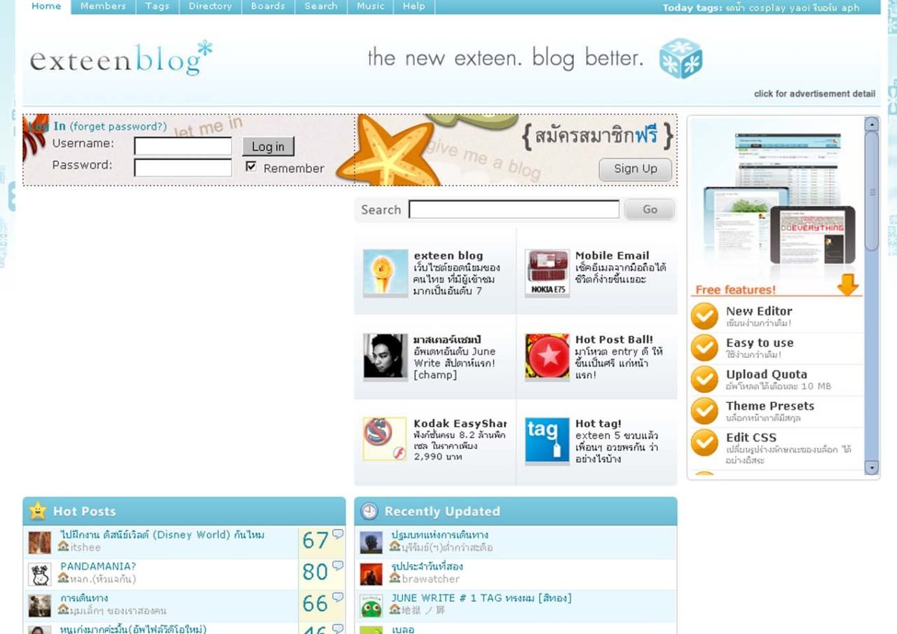 Auf „Exteen Blog“ gibt es ca. 300.000 registrierte Blogs, davon sind zur Zeit etwa 30.000 aktiv. Pro Tag wird die Seite von 240.000 Usern besucht, damit steht „Exteen Blog“ an Beliebtheit auf Platz 5. Prachatai