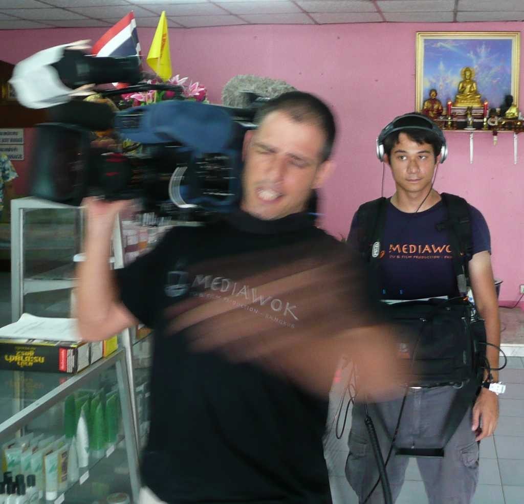 Gleich zwei TV- und Film-Produktionsfirmen arbeiten hier Hand in Hand. Herr Jürgen Lindemann, Chef und Produktionsleiter von Frame, ist selber vor Ort und produziert hier mit der seit Jahren bekannten TV & FILM Produktion Mediawok aus Bangkok, die den Kamera- und Toningenieur stellen, zusammen die Reportage.