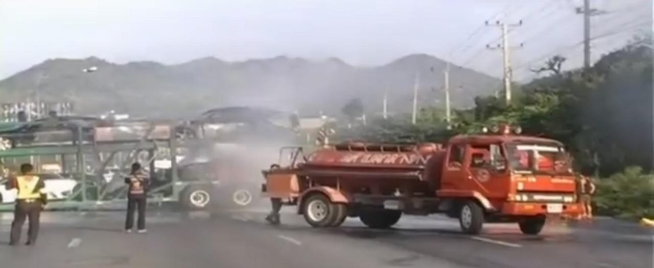 pp Nakhon Ratchasima/Sisaket. Wie Ende Mai von uns berichtet, kam es auf einem Autotransporter mit wertvollen Luxuslimousinen zu einem Brand. Dabei wurden mehrere Fahrzeuge zerstört. Der Schaden soll sich auf mindestens 100 Millionen Baht belaufen.