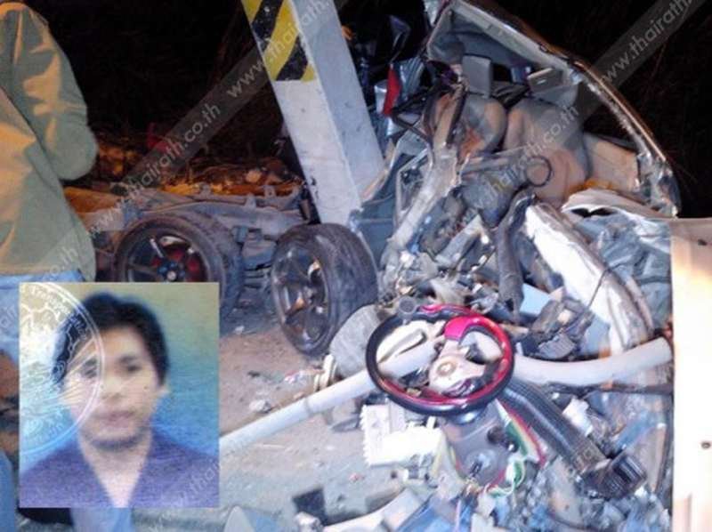 Der 30-jährige Fahrer, Herr Praiwan Jantah hatte offenbar in einer Kurve die Kontrolle über sein Fahrzeug verloren und war auf der Tiwanon Straße in voller Fahrt gegen einen Strommast geprallt.