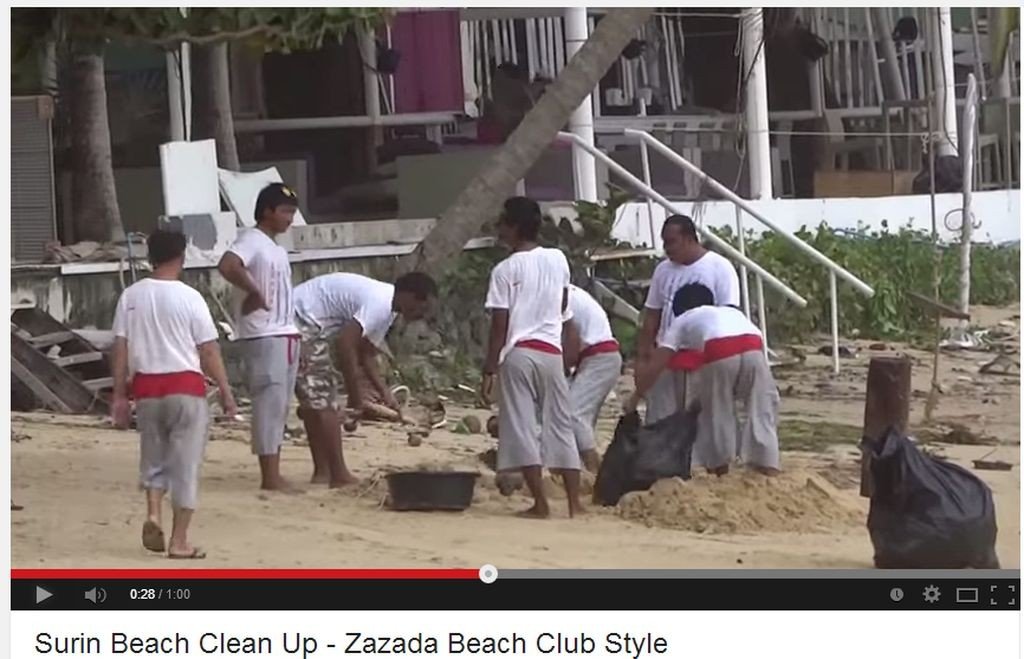 pp Phuket. Ein Video auf YouTube zeigt, wie die Mitarbeiter des bekannten „Zazada Beach Club“ gleich mehrere Müllsäcke in zuvor gegrabene Löcher direkt am Strand von Surin entsorgen. Anschließend werden die Löcher wieder fein säuberlich mit Sand bedeckt.