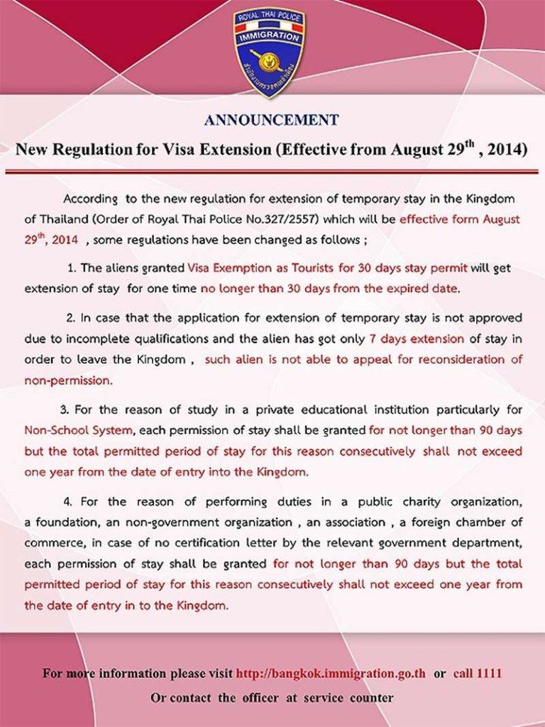 Gleichzeitig wurden jedoch die Visa-Verlängerungs Bestimmungen für Ausländer, die in Thailand in privaten Sprachschulen außerhalb des offiziellen Schulsystems die Landessprache studieren verschärft, erklärte die Einwanderungsbehörde. Den Betroffenen Personen werden zwar ebenfalls die Visaverlängerungen auf 90 Tage gewährt, allerdings nur noch bis zu maximal einem Jahr.
