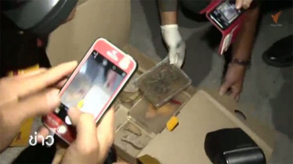 Polizei Generalmajor Chavalait Prasobsilp erklärte, dass in den Paketen die per Post in die USA geschickt werden sollten die Teile eines Babykopfs, ein Baby Fuß, ein Herz und andere menschliche Körperteile gefunden wurden.