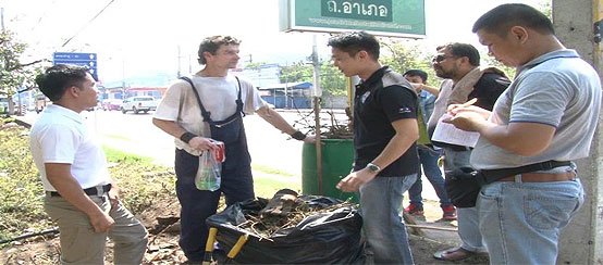 Bei seinen Spaziergängen durch Udon Thani sei ihm dann aufgefallen, wie dreckig hier die Telefonzellen waren. Deshalb habe er sich entschlossen, sie zu reinigen. Dabei säubert er nicht nur die Telefonzellen sondern kümmert sich auch um das Unkraut an den Telefonhäuschen und sammelt zusätzlich auch noch Papier und sonstigen Müll im Bereich der Zellen ein.