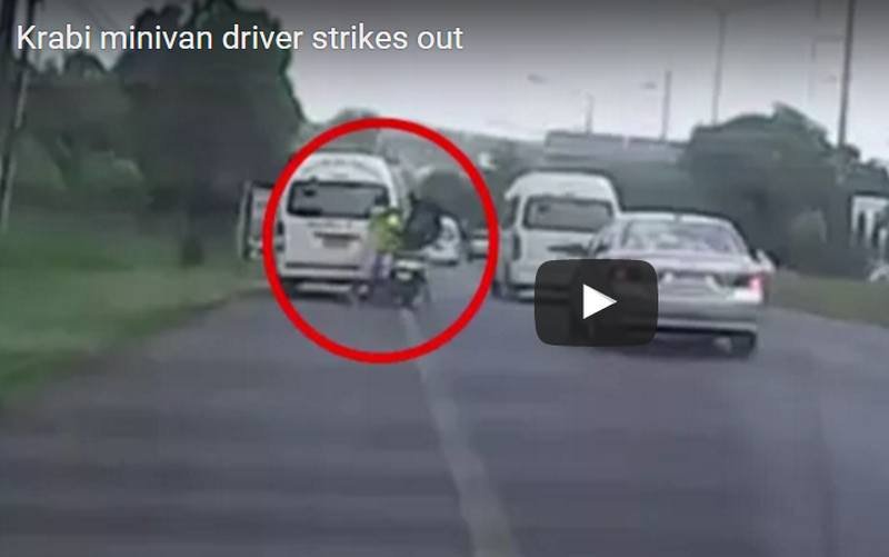 Angeblich soll ein Ausländer mit seinem Motorrad beim Überholen den Außenspiegel eines Minibus berührt haben. Ein Autofahrer hatte den Vorfall mit seiner Onboard-Kamera aufgenommen und auf Facebook veröffentlicht. „Ein solches Verhalten ist ganz und gar schädlich für den guten Ruf von Thailand“, schrieb er dazu.