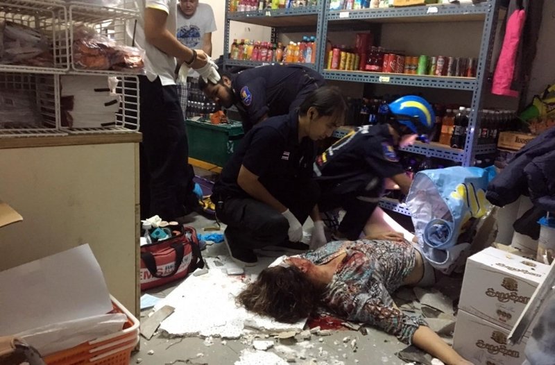 Pattaya. Am frühen Sonntagmorgen gegen 3 Uhr wurden die Polizei und die Rettungskräfte der Sawang Boriboon Stiftung zu einem 7-Eleven Geschäft in der Pattaya Park Straße 10 gerufen, nachdem dort eine russische Touristin durch das Dach in einen Lagerraum gestürzt war.