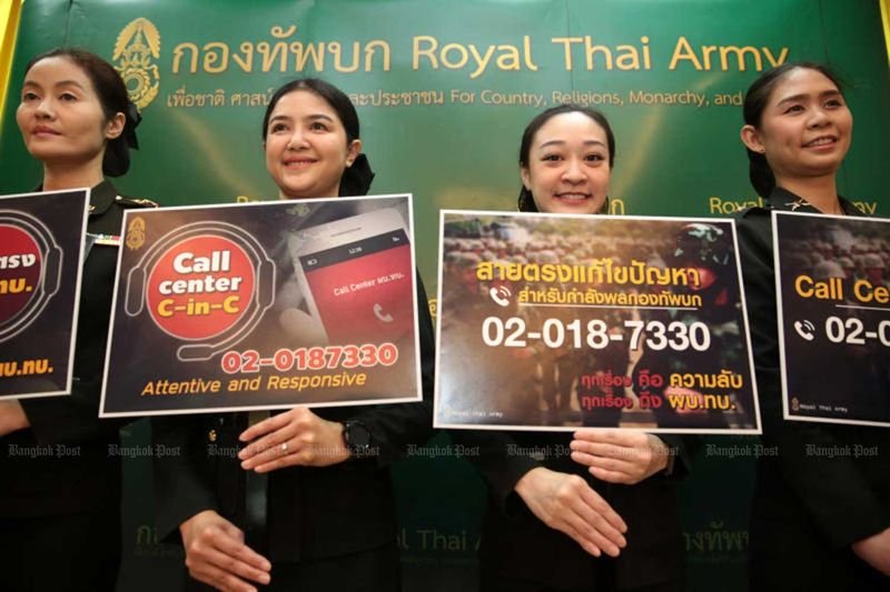 Mitarbeiter einer privaten Firma, und keine Militäroffiziere, würden die Beschwerden der Soldaten über das Callcenter erhalten, versprach er weiter. Die Beschwerdeführer konnten dem Zentrum ihre Namen, Ränge und Positionen mitteilen. Die Beschwerden und andere Details würden dann in versiegelten Umschlägen aufbewahrt, bevor sie an den Armeechef weitergeleitet würden. Die Informationen würden vertraulich behandelt, sagte General Nattapol.