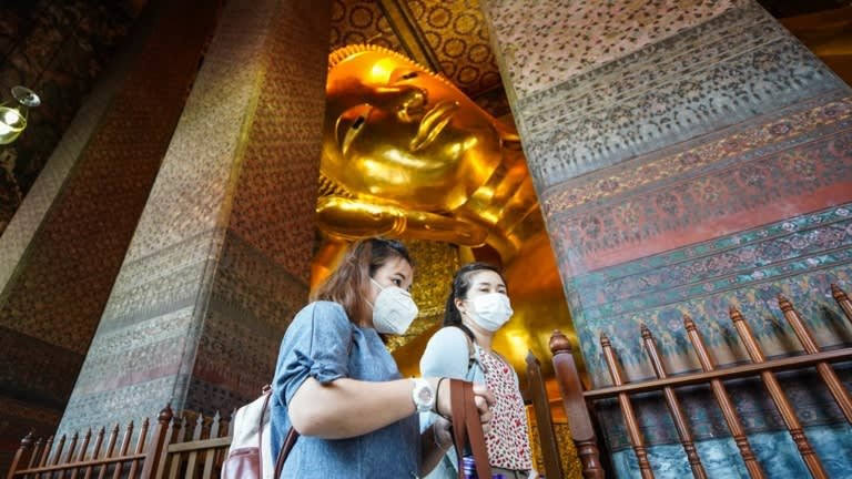 Die thailändische Regierung ermutigt die Öffentlichkeit, weiterhin Masken zu tragen und soziale Distanzierung zu beobachten, während das Land versucht, seinen Tourismussektor anzukurbeln. (Foto von Akira Kodaka)