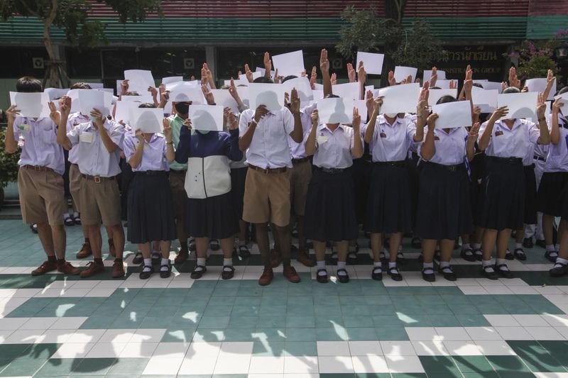 Letzte Woche hielten Schüler der renommierten Triamudom Suksa School in Bangkok aus stillem Protest gegen die Regierung leere Papiere hoch.