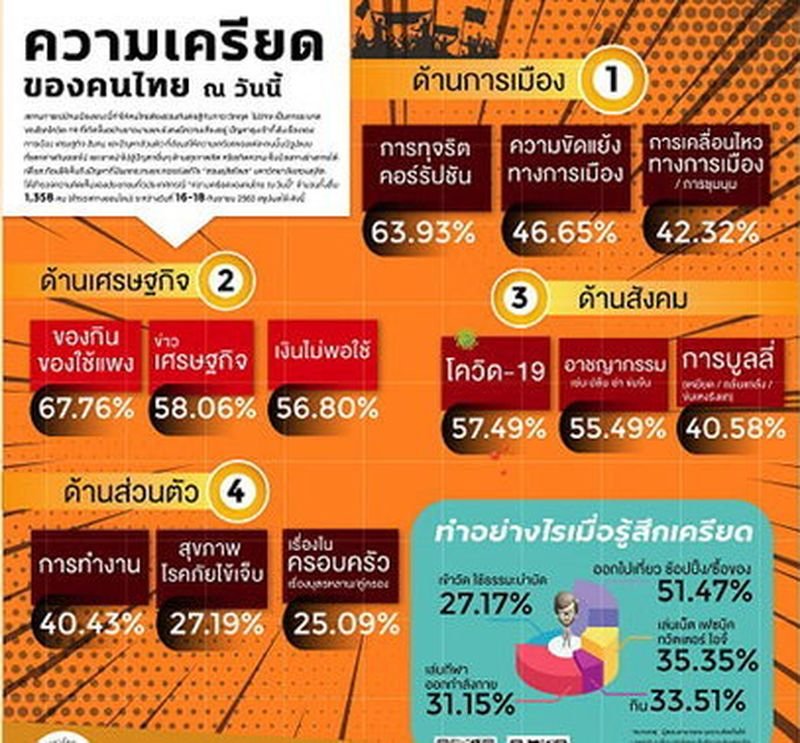BANGKOK. Laut einer aktuellen Umfrage von Suan Dusit in der letzten Woche fühlen sich die Thailänder durch die steigenden Lebenshaltungskosten und die Korruption im Land gestresst.