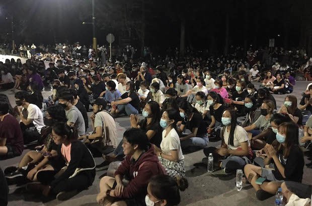 Die Studenten versammeln sich am Sonntag auf dem Campus der Rajamangala Universität of Technology Isan in Nakhon Ratchasima zu einer regierungsfeindlichen Kundgebung. (Foto von Prasit Tangprasert)