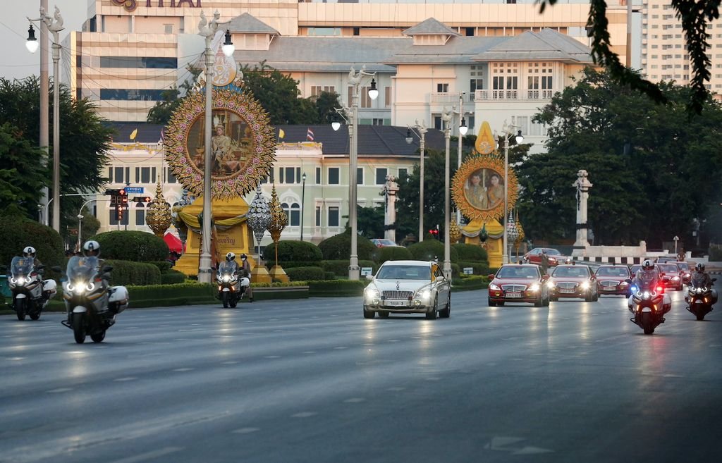 Die Königliche Autoparade fährt am Samstagnachmittag in der Nähe einer Kundgebung vorbei, um den Sturz der Regierung und andere Reformen am Democracy Monument in Bangkok zu fordern. (Reuters Foto)