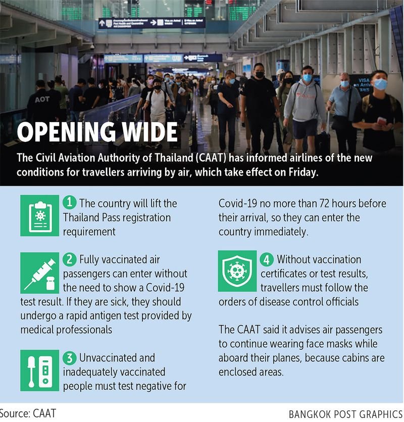Sie sagte weiter, dass die thailändische Zivilluftfahrtbehörde (CAAT) alle Fluggesellschaften und Flughafenmanager aufgefordert habe, Flüge und Personal zu erhöhen, um auf einen erwarteten Anstieg internationaler Ankünfte vorbereitet zu sein, da dieser Freitag auch das Ende der Registrierungspflicht für den Thailand Pass markiert .