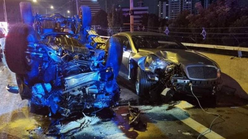 Herr Suthat wird beschuldigt, einen neuen Mitsubishi Pajero auf der Schnellstraße Chaloem Maha Nakhon angefahren zu haben. Der Bentley traf den Pajero auf der mittleren Spur, wodurch das Auto umkippte, bevor es von einem entgegenkommenden Fahrzeug auf der rechten Spur erfasst wurde.