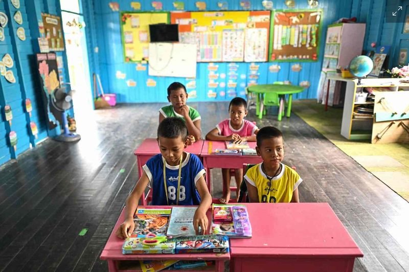 Sie sind die letzten Schüler der Schule in Ban Khun Samut Chin, einem Küstendorf im Bezirk Phra Samut Chedi in Samut Prakan, weniger als 10 Kilometer vom Rand Bangkoks entfernt, der langsam von den Wellen verschlungen wird.