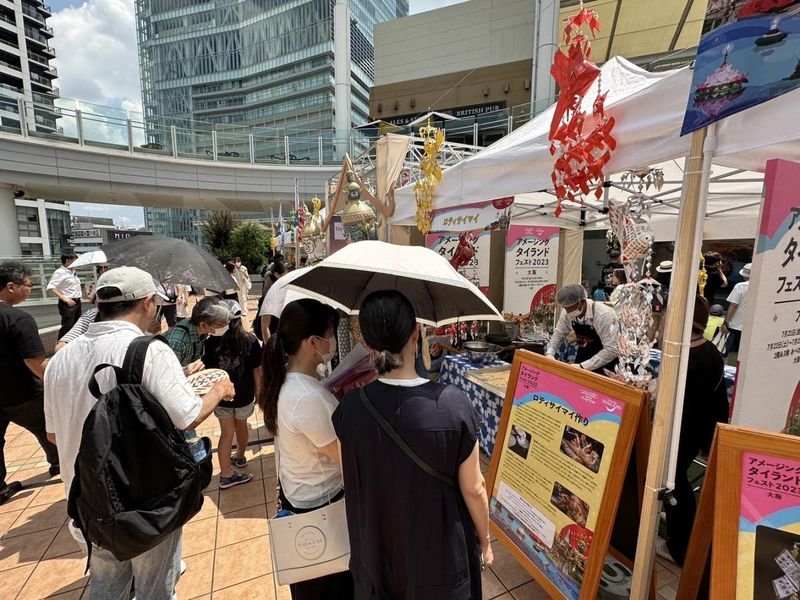 Die Atmosphäre bei der Veranstaltung „Amazing Thailand Fest 2023“, die am 21. Juli 2023 in Osaka stattfand.