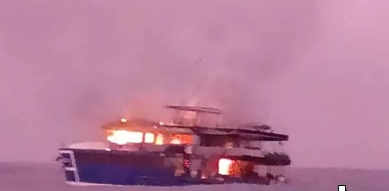 Ein Tauchtouristenboot mit 26 Personen an Bord fing heute Morgen (12. April) um 4 Uhr etwa 13 Seemeilen vom Thap Lamu Pier in Khao Lak, Phang Nga entfernt, Feuer und alle Touristen konnten sicher entkommen, berichtete die Zeitung Naewna.
