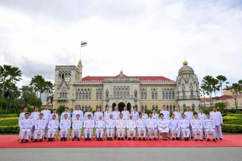 Das von Herrn Anutin geführte Kabinett posiert für Fotos vor dem Santi Maitri-Gebäude. Die neue Regierung hat ihre Amtszeit am 1. Oktober begonnen.