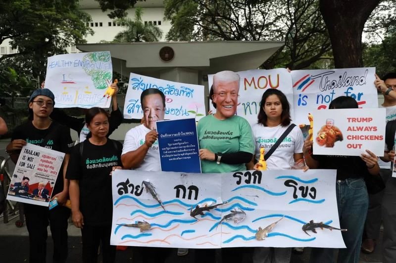 Die Demonstranten, angeführt von Lertsak Khamkongsak, dem Vorsitzenden des thailändischen NGO-Koordinierungskomitees für Entwicklung und des Netzwerks der Eigentümer von Bodenschätzen, forderten Washington auf, aus dem Abkommen auszusteigen, das während des ASEAN-Gipfels in Malaysia in der vergangenen Woche unterzeichnet worden war.