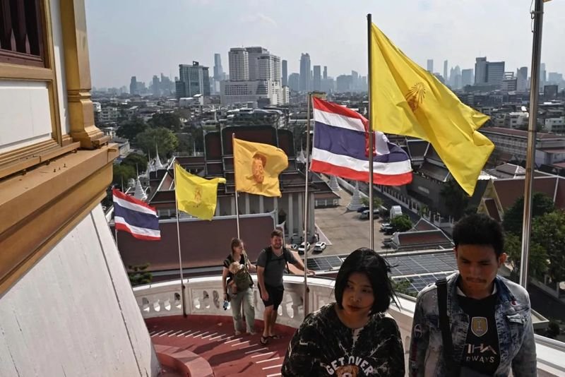Besucher steigen die Treppe im Wat Saket-Tempel in Bangkok hinauf. (Foto: AFP)