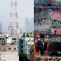Bangkok กรุงเทพฯ: Wahlplakate gegen Brandstifter
