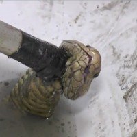 Helfer entfernen auf Phuket zwei Pythons aus Abflussrohr