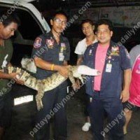 pp Sattahip. Der 41-jährige Herr Surapong informierte die Polizei und Rettungskräfte, nachdem er auf dem Weg zu seinem Auto von einem etwa zwei Meter langen Krokodil gejagt wurde.
