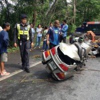 pp Chumphon. Am Freitag wurde ein 52-jährige Motorradfahrer einer schweren Honda Goldwing und seine 49 Jahre alte Beifahrerin auf der Fahrt zum Goldwing Cup in Udon Thani von einem starken Regen überrascht. Auf der Regennassen Asien Straße 41 im Bezirk Lamae verlor Herr Boonsong die Kontrolle über seine eine Millionen Baht teure Maschine und prallte gegen einen Baum.