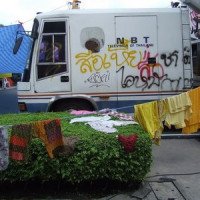 Die Bombe explodierte am Morgen gegen 4.20 Uhr vor dem Santi Maitree Gebäude, nur 50 Meter von der Bühne der PAD Redner entfernt.