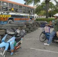 Einer der beiden Männer ist Taxifahrer und geriet auf der Phitsanoluk Road in eine Mausefalle. In dem Taxi wurde eine selbstgebaute Schußwaffe, eine Eisenstange und Ausweise gefunden, die den Mann als PAD-Wachmann auswiesen.