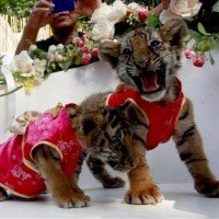 Wieder einmal wurde in Thailand Neujahr gefeiert: Am 14. Februar begann nach dem chinesischen Kalender das Jahr des Tigers. An den Feierlichkeiten beteiligt waren auch diese beiden zwei Monate alten Tiger im Zoo von Si Racha. ap