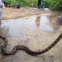 Helfer entfernen auf Phuket zwei Pythons aus Abflussrohr