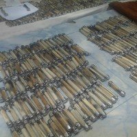 Kanchanaburi. Neun Tigerzähne, mehr als 1.000 Amulette die Tigerfellteile enthielten, und Dutzende Gefäße mit toten Tieren und Tierteilen gefüllt, wurden auf einem Pick-up gefunden.