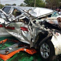 Prachinburi. Vier Staatsangestellte wurden beim Unfall in Prachinburi getötet und zwei weitere schwer verletzt.