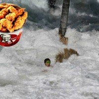 KFC Thailand wollte wohl die Grenzen der Geschmacklosigkeit ausprobieren und empfahl den thailändischen Bürgern, vor ihrer Flucht vor dem Tsunami noch schnell etwas zu Essen zu bestellen. Dann sollten sie nach Hause eilen und die Katastrophe nebst ihrem Essen in aller Ruhe zu Hause vor dem Fernseher genießen.